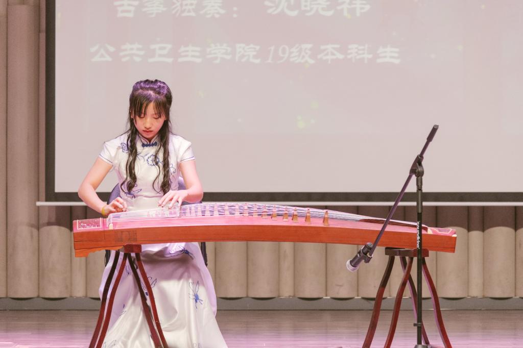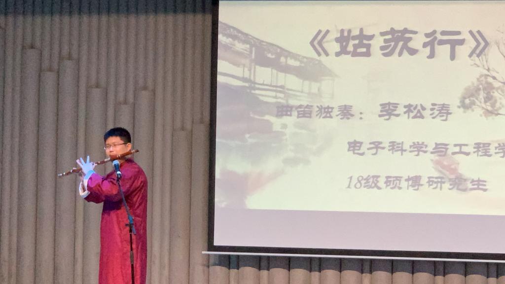 音乐会以“传承的力量”为主题,先以一段师生精心制作的小视频对公司音乐公选课程美育教学改革实践20年历程进行了回顾。本次音乐会演出全部为本学期《民族器乐欣赏》和《艺术实践》公选课非艺术专业的员工,演奏了十余首中国民族器乐经典作品,包括用西洋乐器演奏的中外音乐作品,表演形式多样化,独奏、独舞、合唱、群舞等。音乐会上,员工们用梆笛、曲笛、二胡、琵琶、古筝等中国乐器演奏了《扬鞭催马运粮忙》《姑苏行》《月夜》《绿腰》《彝族舞曲》,用小提琴、钢琴西方乐器演奏了《云雀》《花儿为什么这样红》,独舞《书简》,新疆维吾尔族舞蹈《欢乐地跳吧》,形体舞蹈《传奇》,群体藏族舞蹈《向着太阳》《北京的金山上》,合唱《在太行山上》等四首多声部合唱曲目。参加演出员工绝大多数是首次登台表演,来自公司不同学院、不同专业的本科生,另外特邀公司笛箫协会创始人之一、现就读电子学院硕博连读2年级的李松涛代表公司笛箫协会成员现场演奏。每位同学真挚热情的情感表达、细腻动人的乐声、优美的舞姿引起了现场观众阵阵掌声,现场洋溢着浓郁的艺术气息。