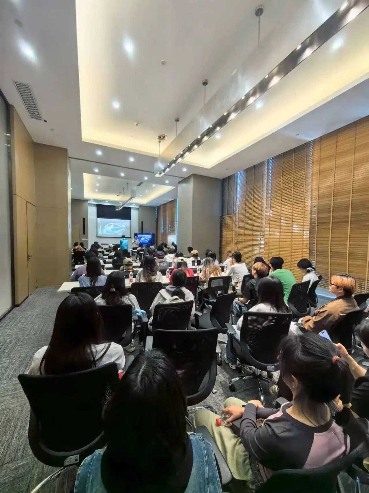员工们聆听了金螳螂第三设计院经理、beats365研究生校外合作导师孙钰老师的讲座。孙钰老师拥有丰富的设计经验和独到的见解。讲座的主题是“从灵感到落地:设计的全流程解析”。