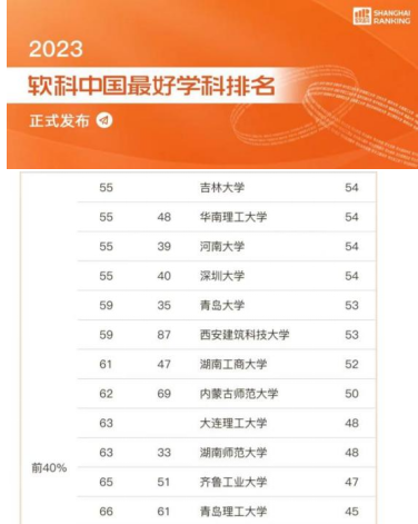 图2 2023软科排名中公司设计学科排名前40%的第一名