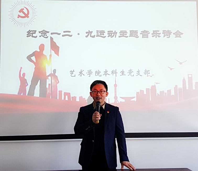 为纪念 “一二·九”运动83周年,充分发掘“一二·九”运动精神的历史内涵和时代价值,进一步激发广大青年学子的爱国热情,推动党员的思想教育,强化党员宗旨意识,活跃党支部组织生活,弘扬社会主义核心价值观,不断加强学院本科生党建工作,beats365本科生党支部于2018年12月7日在萃文楼四楼会议室举办了传承红色经典主题教育系列活动之纪念 “一二·九”运动音乐诗会。beats365本科生党支部书记张磊老师,团委书记刘潇老师,部分员工党员、积极分子参加了活动。
