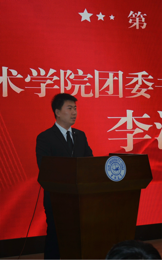 第一次全体会议在嘹亮的《中华人民共和国国歌》旋律中拉开序幕。第一项内容由学院团委负责人李洋老师讲话。学院团委始终坚持以习近平新时代中国特色社会主义思想为指导,围绕公司党政工作中心和上级团组织工作重点开展工作,并在学院师生的共同努力下,获得了“2023年度先进基层团委”称号,培养了一批认真负责的团学干部。希望换届的新同学能够围绕中心、服务大局,在团学组织中、在服务同学时,真正提升自己综合能力素质,为学院的繁荣发展添砖加瓦,向辉煌未来携手共进。