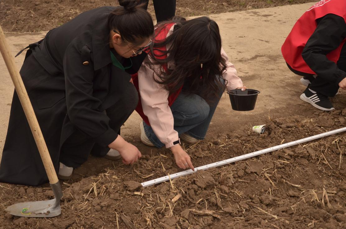 最后开展了农事劳动实践。在植物科学学院师生指导带领下,同学们学习了点播器和手持播种器的使用。同时划分了小组劳动区域,明确了劳动分工,进行了锄草、耕地、播种等一系列的农业实践活动。